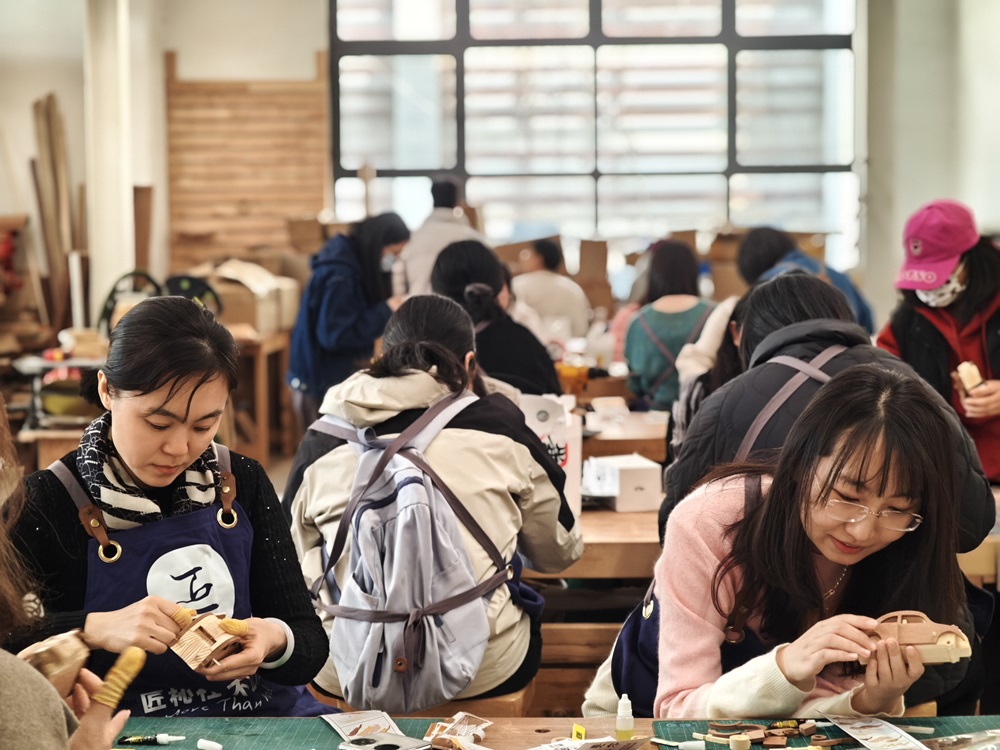 隨后,大家移步制作區(qū),在專業(yè)老師指導(dǎo)下,紛紛化身“巧手匠人”,興致勃勃地投入到木工制作中。從選材、切割、打磨到組裝,大家認(rèn)真細(xì)致地完成每一個(gè)步驟,感受傳統(tǒng)木工技藝的魅力,現(xiàn)場(chǎng)氣氛熱烈,歡聲笑語(yǔ)不斷。