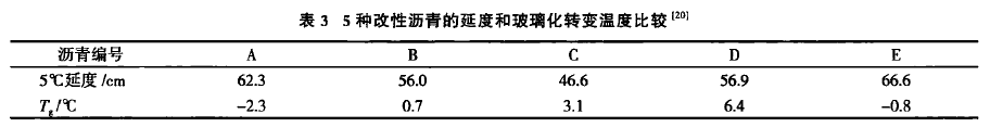 c)玻璃化轉(zhuǎn)變溫度從粘彈性角度分析改性瀝青的低溫性能,兼具理論和實際意義,可以有效反映改性瀝青的低溫性能;然而,采用該指標(biāo)評價改性瀝青的研究相對較少,其對不同種類改性瀝青低溫性能的適用性仍有待進一步開展。
