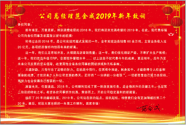 公司總經(jīng)理范金成2019年新年致詞