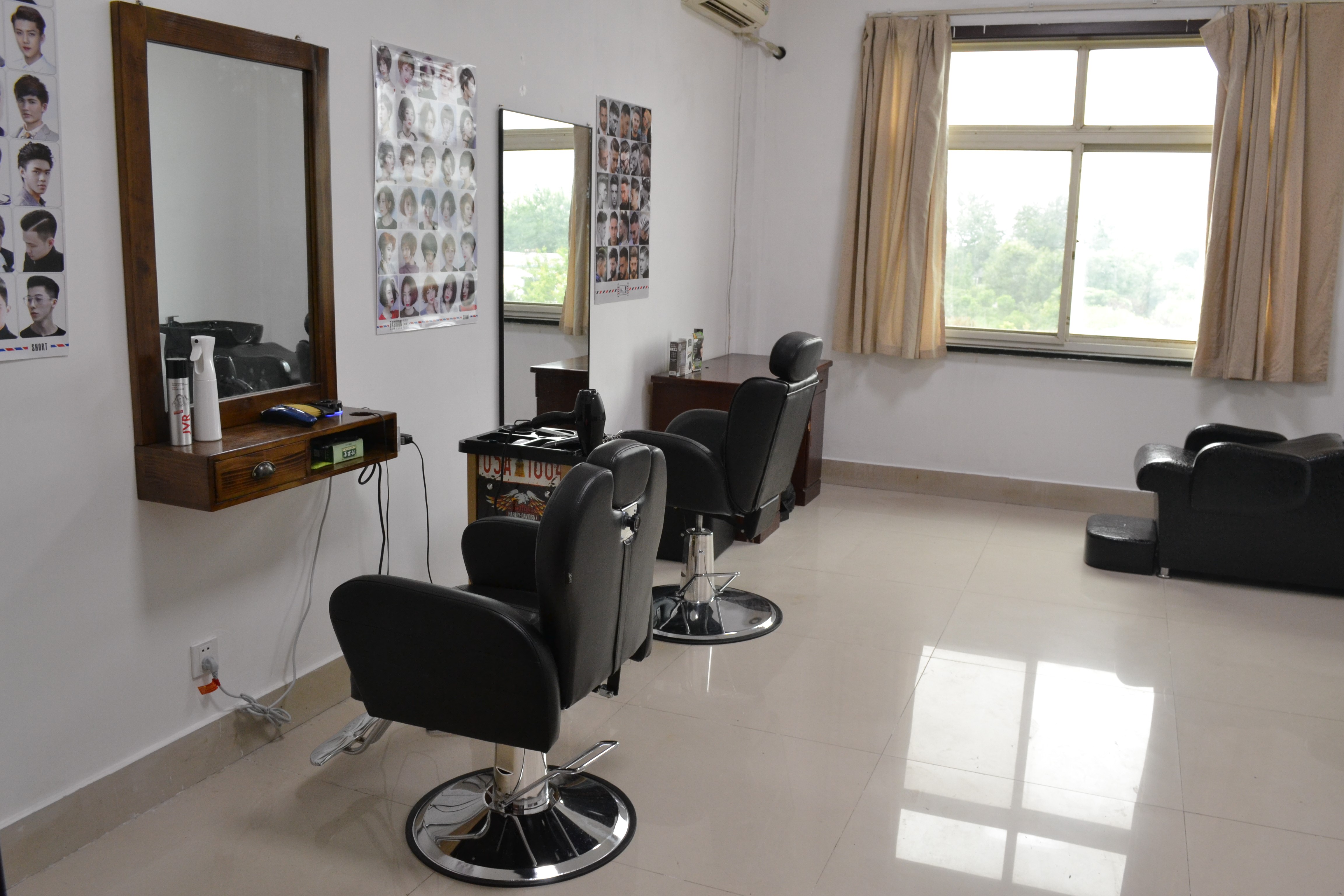 “工欲善其事,必先利其器”。公司按照專業(yè)理發(fā)室的標(biāo)準(zhǔn),專門購置了理發(fā)推、吹風(fēng)機、洗頭躺椅、熱水器、毛巾架等專業(yè)設(shè)備。