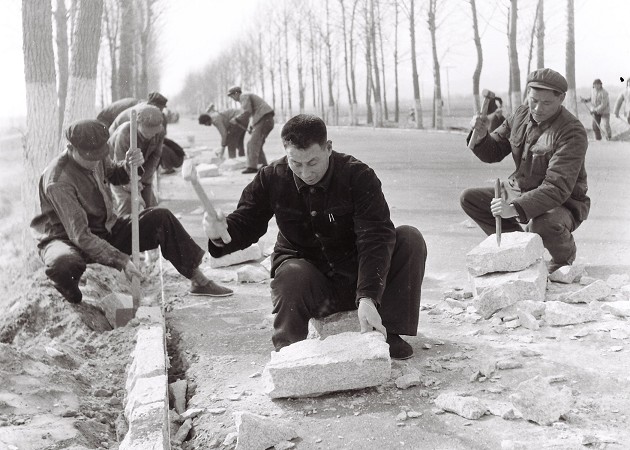 由于當(dāng)時沒有瀝青保溫罐車,瀝青、渣油的運輸和傳送只能靠工人們用鐵桶完成。他們每天忍受著陣陣熱浪和濃烈的瀝青味,在太陽底下辛苦勞作。修建瀝青混凝土或水泥混凝土路面,使用材料種類多,工序復(fù)雜,勞動強度大,不僅耗費大量的人力物力,而且工作效率非常低,一個工程往往要兩三年才能完成。
